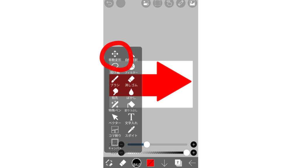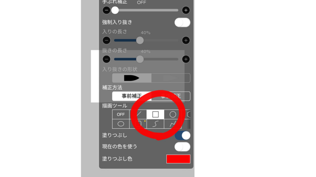 2.そして、右上の指マークを押して、長方形を選んで下さい