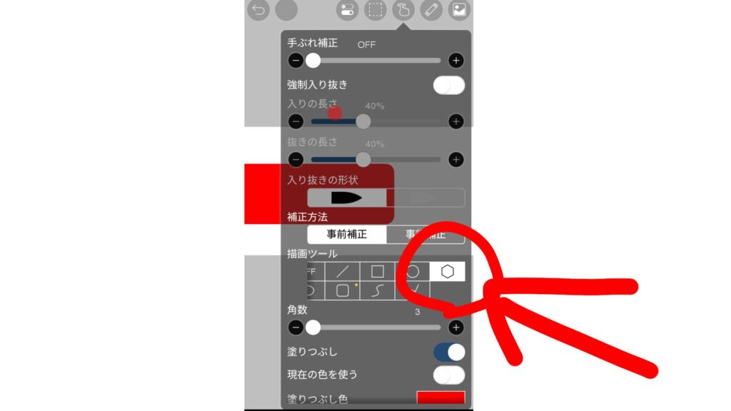 4.で、先ほどの同じく左上の指マークを押して、今度は多角形を選択します
