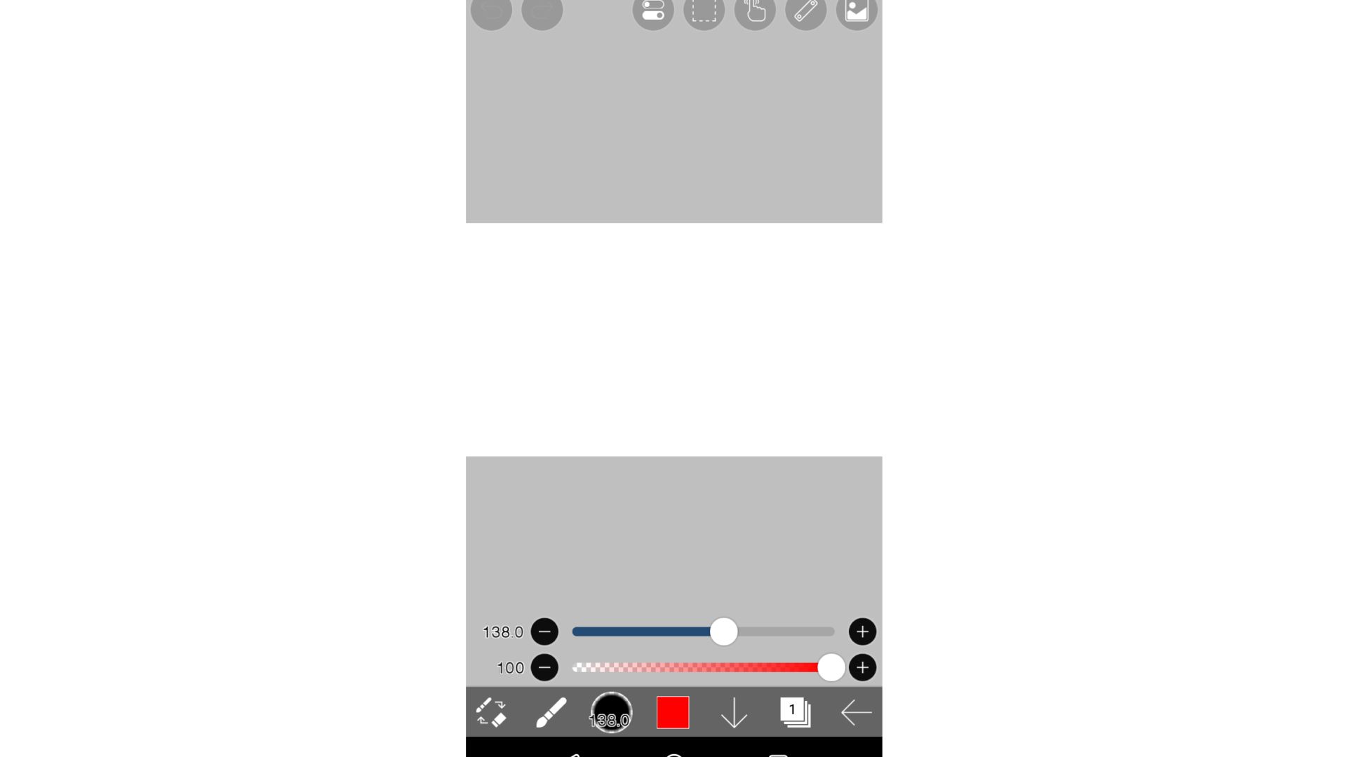 3.で、キャンバス上で指を押しながら移動させて長方形を作ります