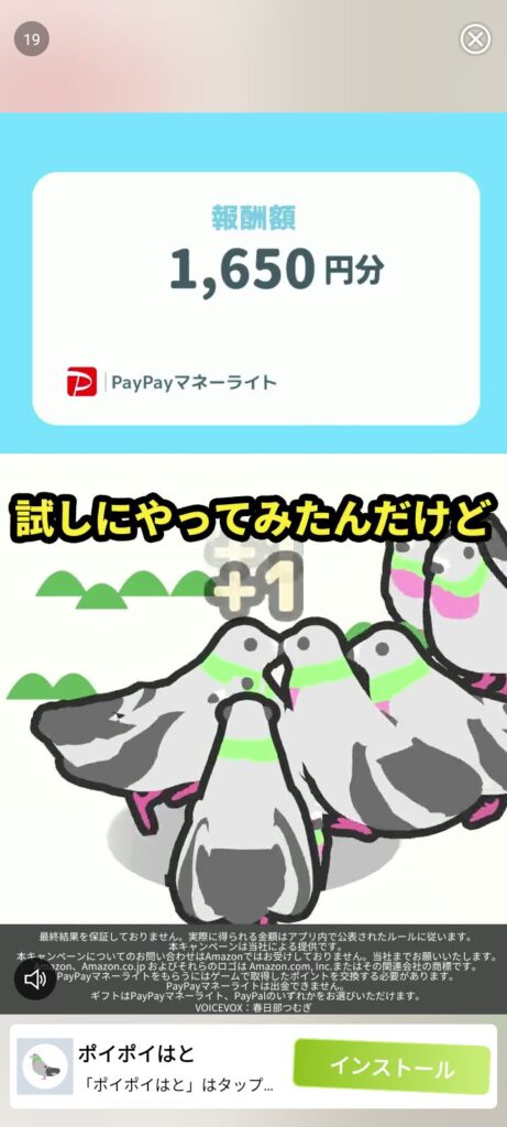 押してみると、広告が流れ、